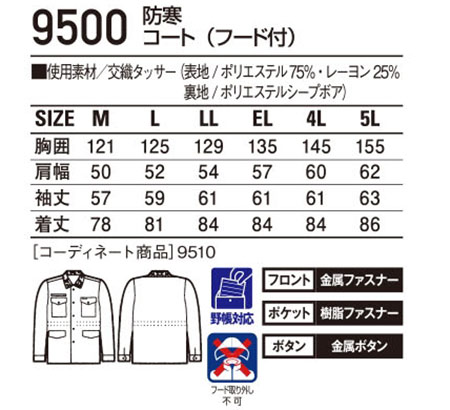 9500/防寒コート(フード付) |