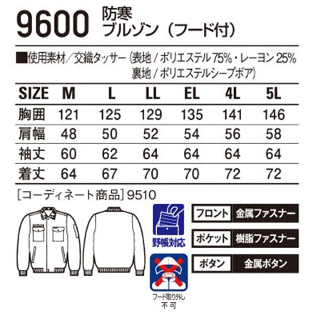 9600/防寒ブルゾン(フード付) |