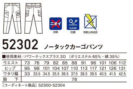 52302/ノータックカーゴパンツ |