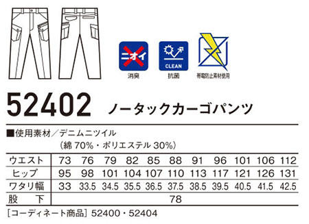 52402/ノータックカーゴパンツ |