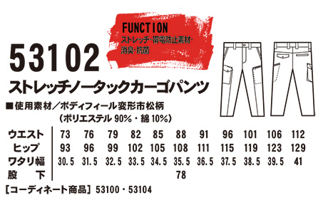 53102/ストレッチノータックカーゴパンツ |