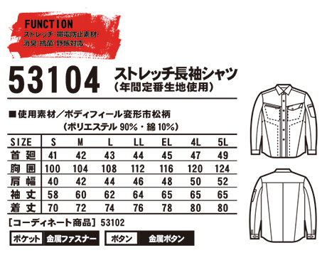 53104/ストレッチ長袖シャツ(年間定番生地使用) |