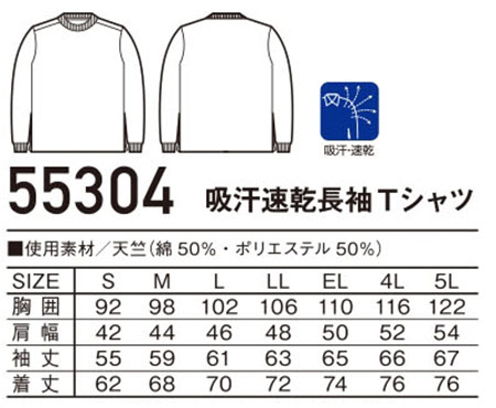 55304/吸汗速乾長袖Tシャツ |