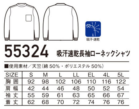 55324/吸汗速乾長袖ローネックシャツ |