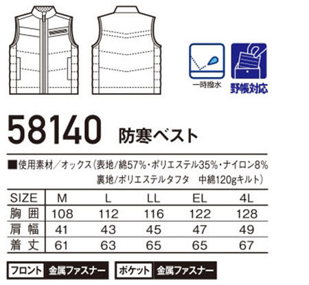(株)自重堂 秋・冬用作業服 (防寒)58140/防寒ベスト