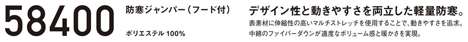 (株)自重堂 秋・冬用作業服 (防寒)58400/防寒ジャンパー(フード付)