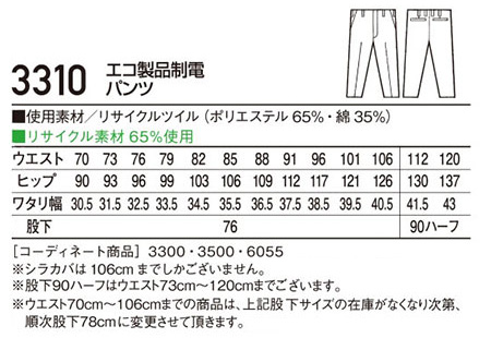 3310/エコ製品制電パンツ |