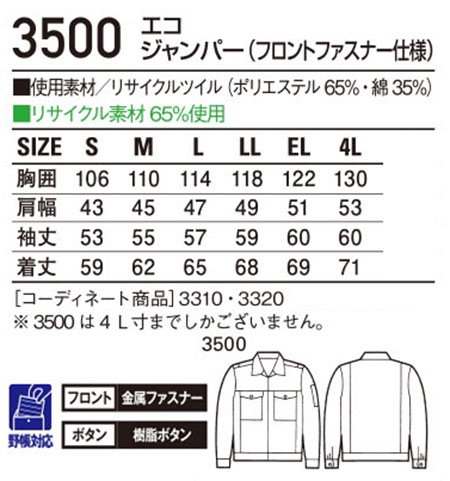 3500/エコジャンパー(フロントファスナー仕様) |