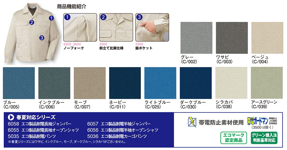 3300/エコ製品制電ジャンパー |