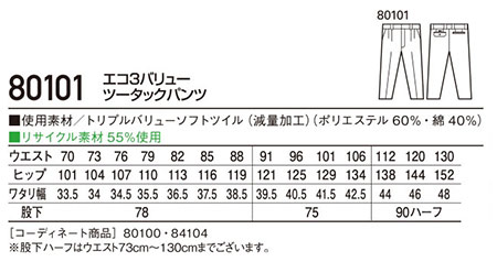 80101/エコ3バリューツータックパンツ |