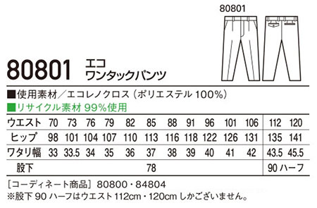 80801/エコワンタックパンツ |