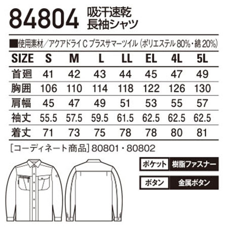 84804/吸汗速乾長袖シャツ |