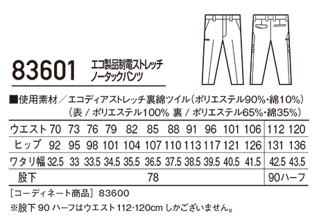 83601/エコ製品制電ストレッチノータックパンツ |
