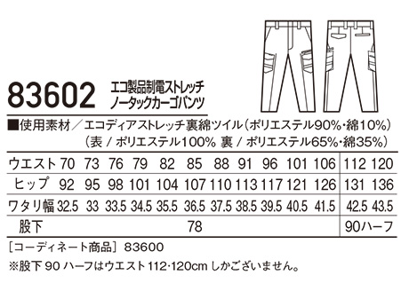 83602/エコ製品制電ストレッチノータックカーゴパンツ |