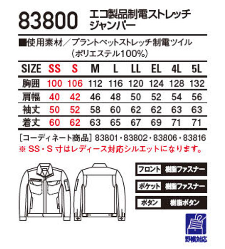 83800/エコ製品制電ストレッチジャンパー |