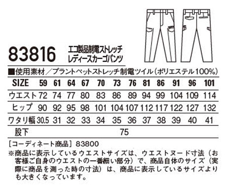 83816/エコ製品制電ストレッチレディースカーゴパンツ |