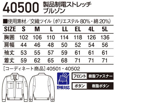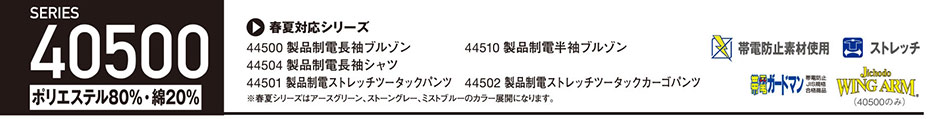 40502/製品制電ストレッチツータックカーゴパンツ |