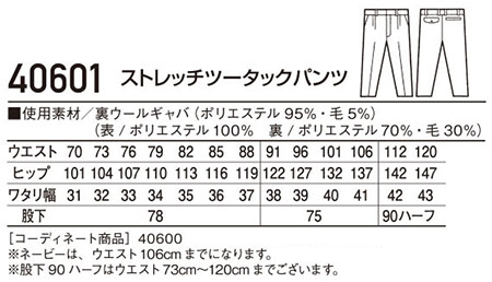 40601/ストレッチツータックパンツ |