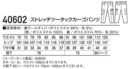 40602/ストレッチツータックカーゴパンツ |