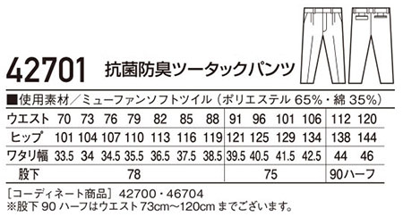 42701/抗菌防臭ツータックパンツ |