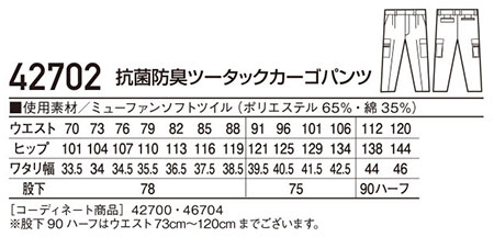 42702/抗菌防臭ツータックカーゴパンツ |