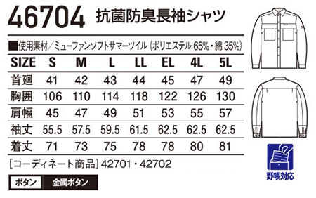 46704/抗菌防臭長袖シャツ |