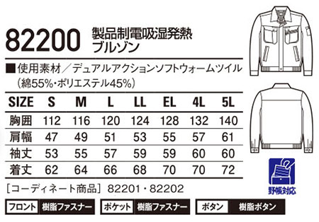 82200/製品制電吸湿発熱ブルゾン |