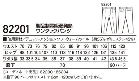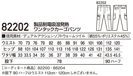 82202/製品制電吸湿発熱ワンタックカーゴパンツ |
