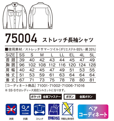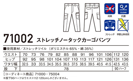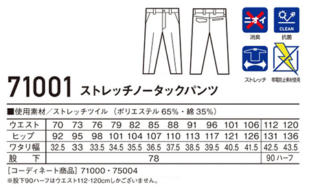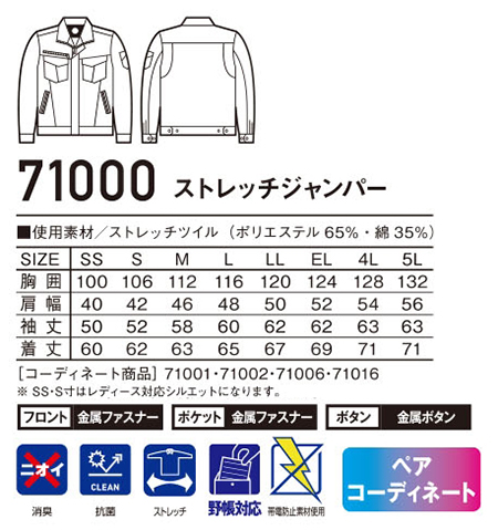 (71000シリーズ/丈夫でソフトな着心地のストレッチT/C素材) |