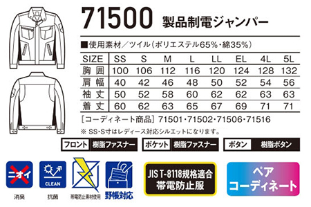 71500/製品制電ジャンパー |