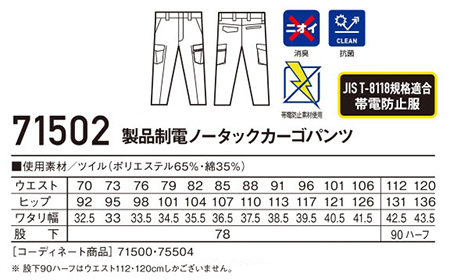 (71500シリーズ/丈夫でソフトな着心地のT/C素材。あらゆる現場に対応する帯電防止JIS T8118適合ウェア) |