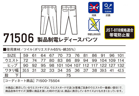 71506/製品制電レディースパンツ |