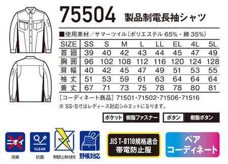75504/製品制電長袖シャツ |