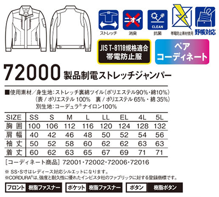 72000/製品制電ストレッチジャンパー |