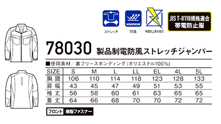 78030/製品制電防風ストレッチジャンパー