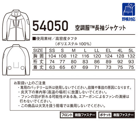 54050/空調服® 長袖ジャケット |