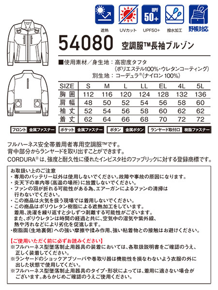 54080/空調服® 長袖ブルゾン |