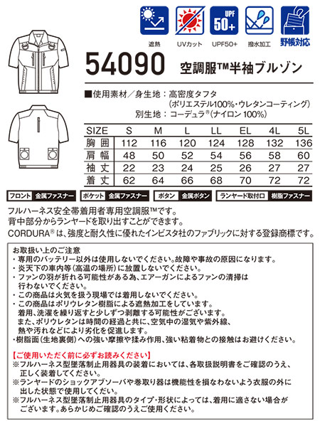 54090/空調服® 半袖ブルゾン |