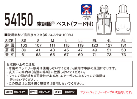 自重堂の作業服(春・夏)空調服 54150/空調服TMベスト