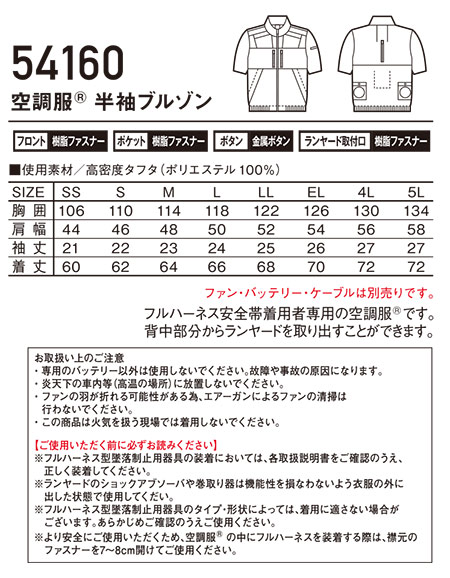 54160/空調服® 半袖ブルゾン |