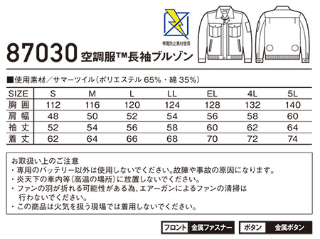 自重堂の作業服(春・夏)空調服 87030/空調服TM長袖ブルゾン