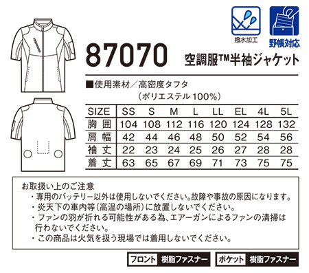 87070/空調服® 半袖ジャケット |