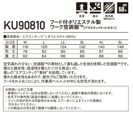 KU90810/空調服® 長袖ブルゾン(フード付)