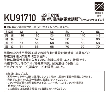 自重堂の作業服(春・夏)空調服 KU91710/空調服 制電長袖ブルゾン