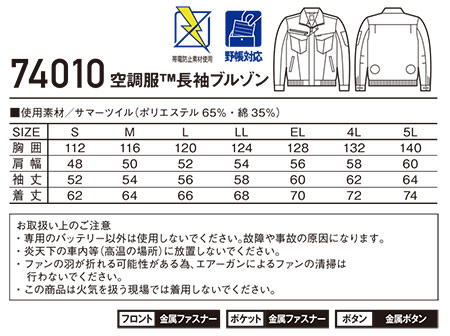 74010/空調服® 長袖ブルゾン