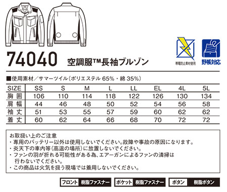 自重堂の作業服(春・夏)空調服 74040/空調服TM長袖ブルゾン