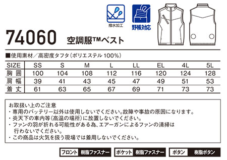 自重堂の作業服(春・夏)空調服 74060/空調服TMベスト