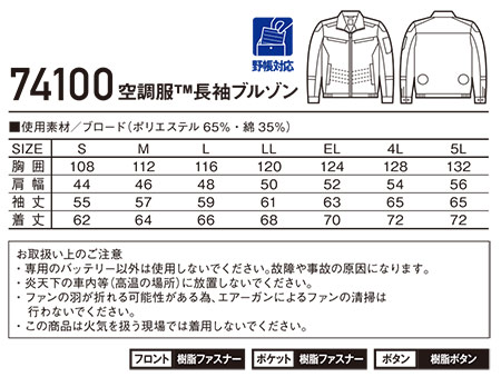 自重堂の作業服(春・夏)空調服 74100/空調服TM長袖ブルゾン