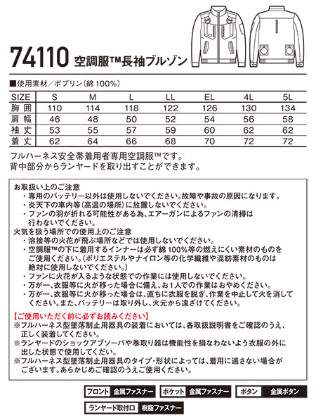 自重堂の作業服(春・夏)空調服 74110/空調服TM長袖ブルゾン