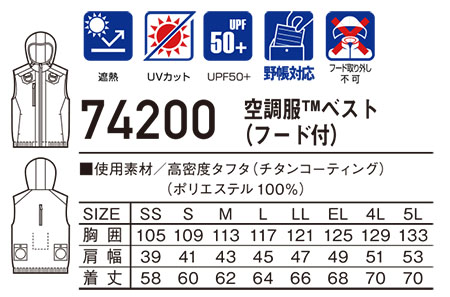 自重堂の作業服(春・夏)空調服 74200/空調服TMベスト